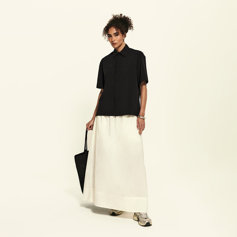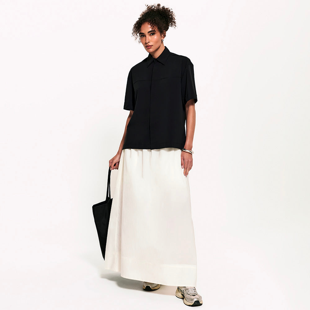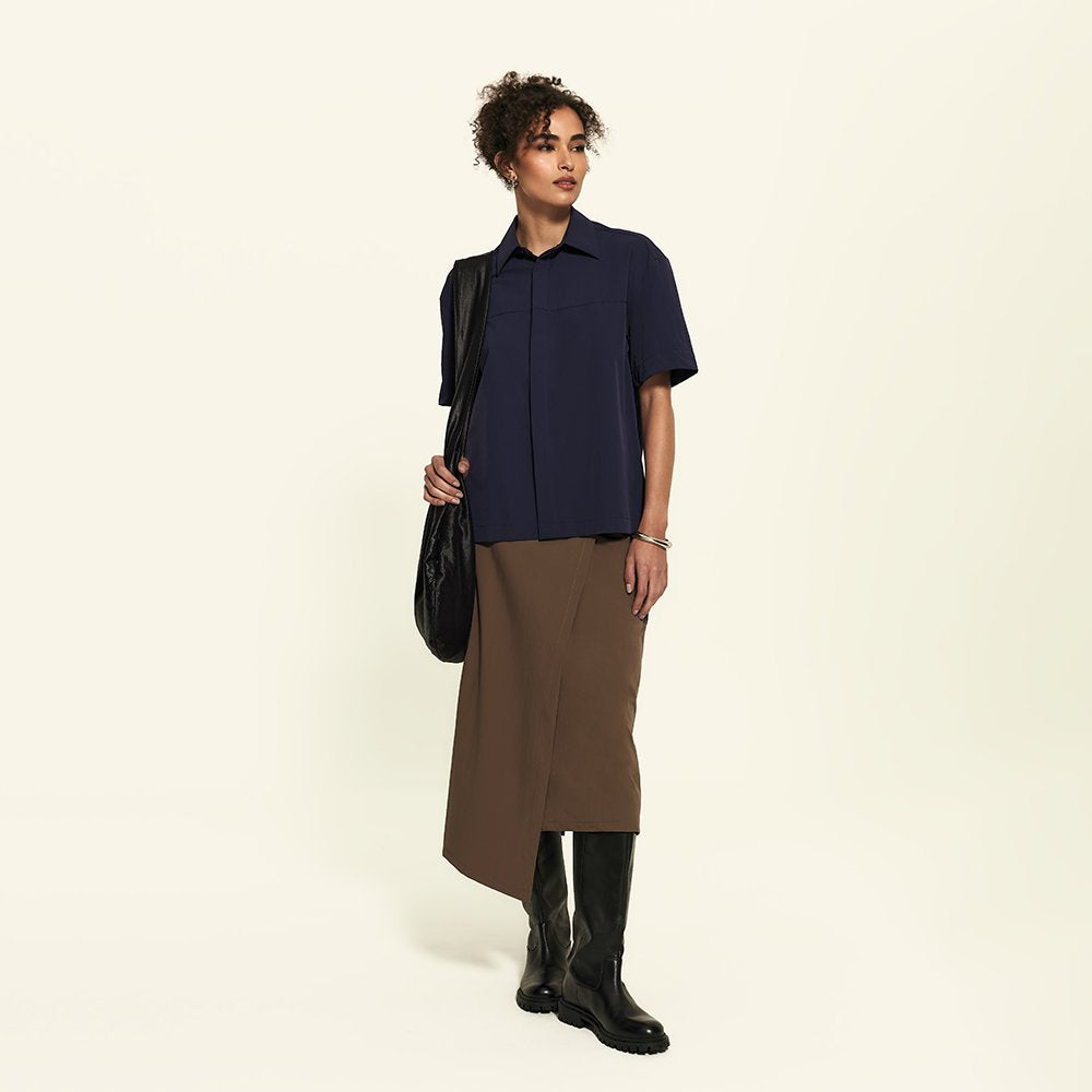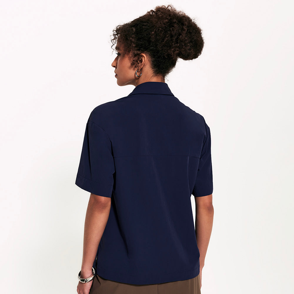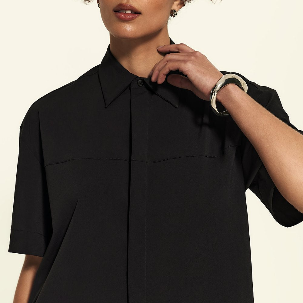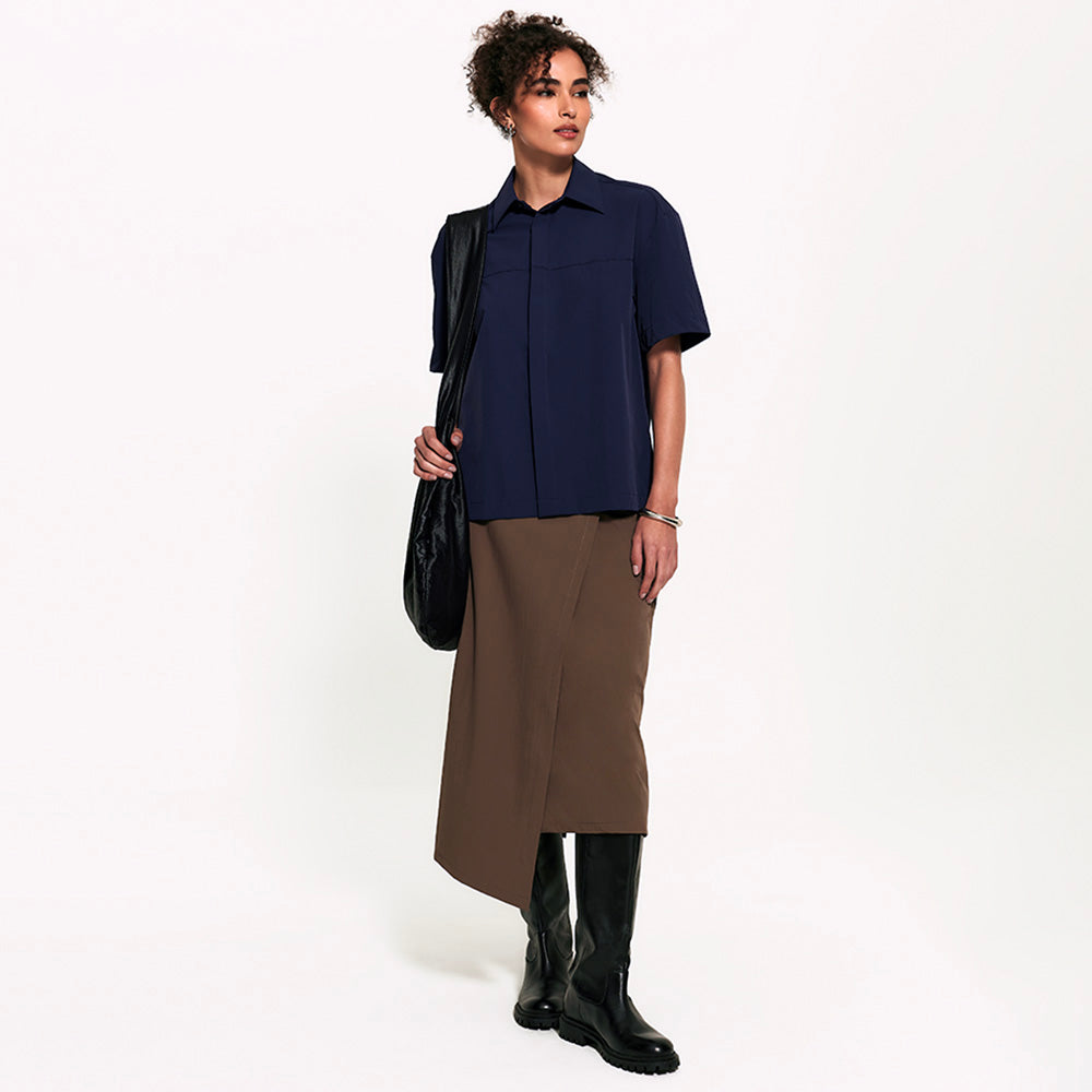 A Camisa Manga Curta FutureForm é a peça que faltava no seu guarda-roupa: um shape oversized com mangas amplas e recortes de design que elevam o visual. É estruturada na medida e tem vista totalmente embutida: quando fechada, os botões desaparecem, sobrando apenas o da gola para um detalhe sutil e elegante. Versátil por natureza, ela vai do trabalho aos dias casuais com leveza. Fechada, ganha ar de alfaiataria, já aberta, se adapta a combinações descontraídas e frescas.