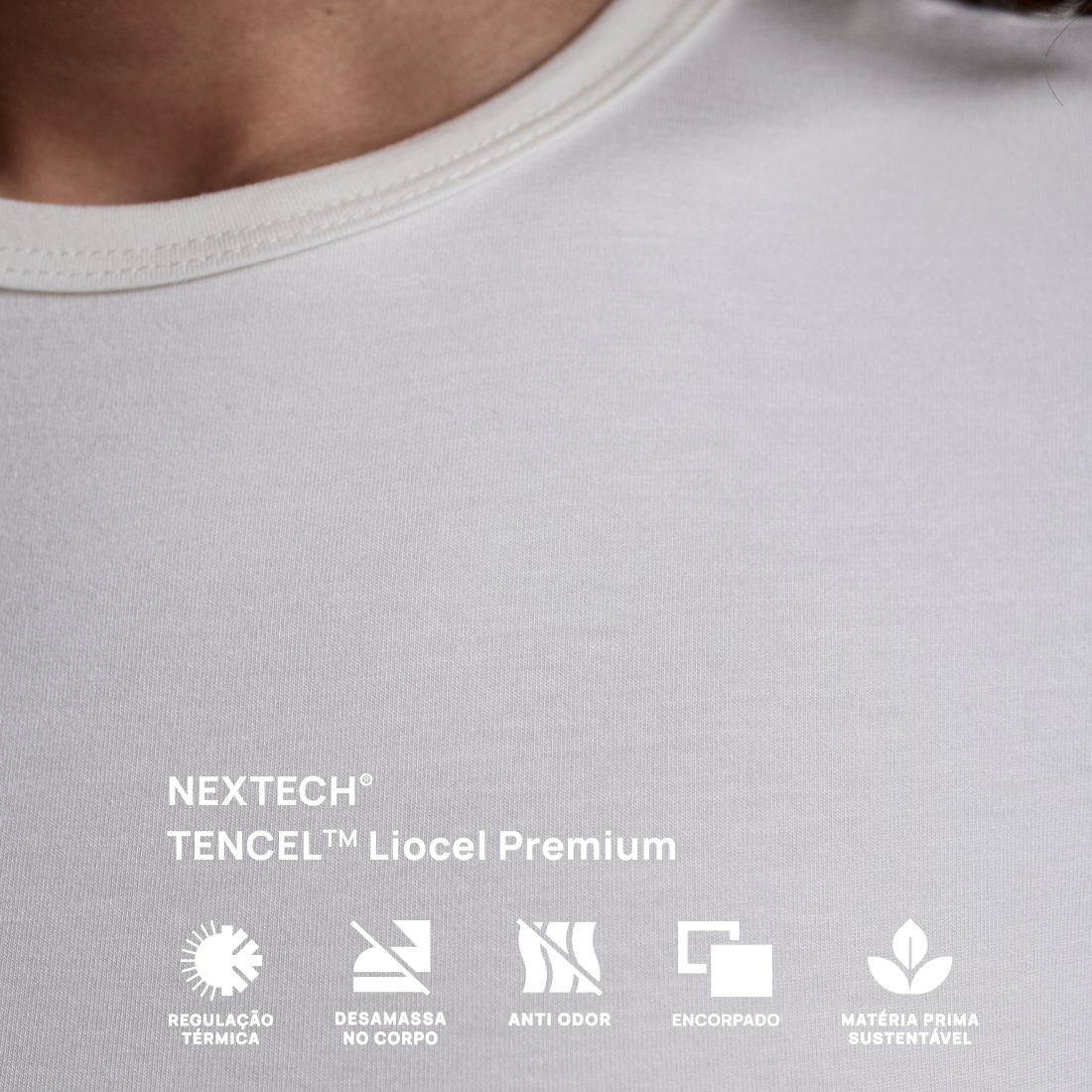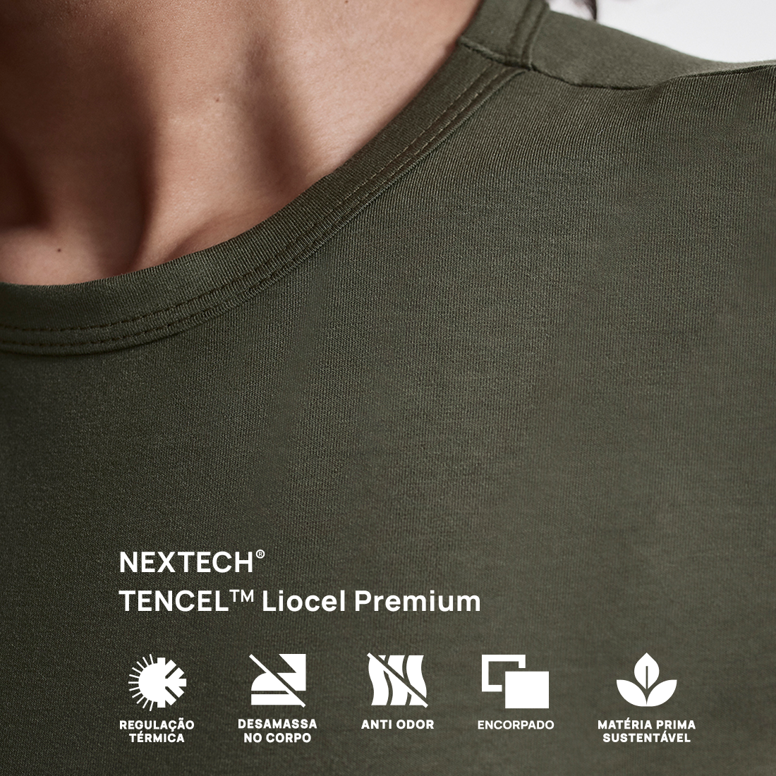 A camiseta NEXTECH é a primeira e única camiseta no Brasil feita com as fibras TENCEL™ Liocel. Tecnologia invisível aos olhos, mas evidente no uso: durabilidade incomparável, conforto térmico avançado e caimento levemente encorpado para não marcar o corpo