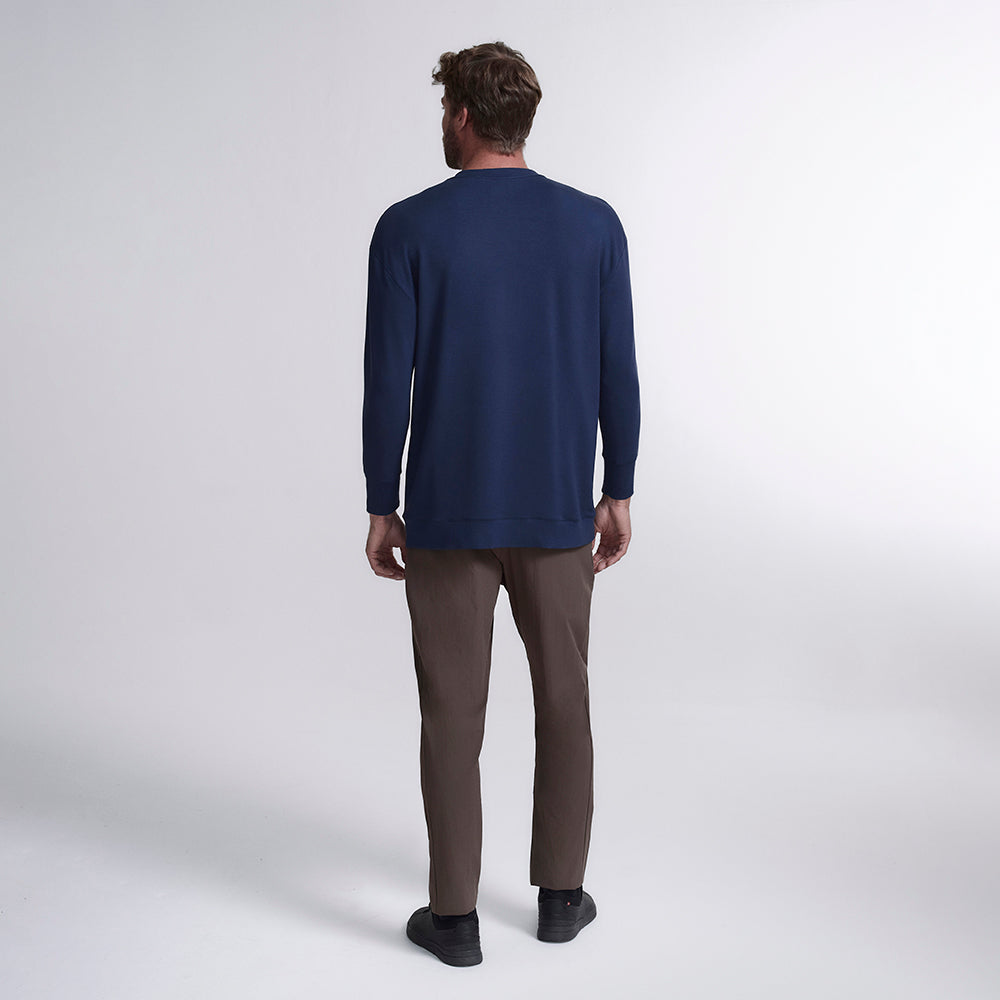 A renovação do nosso Pullover Masculino chegou para compor seus dias mais frios: modelagem clean, com caimento estruturado, acabamento refinado, modelagem ampla e ultra confortável, é ideal para vestir por baixo de outras peças ou como item principal. Tem recorte vertical nas costas e mangas com punhos largos para uma proposta casual que alonga a silhueta. Sim, este é o agasalho do homem moderno.