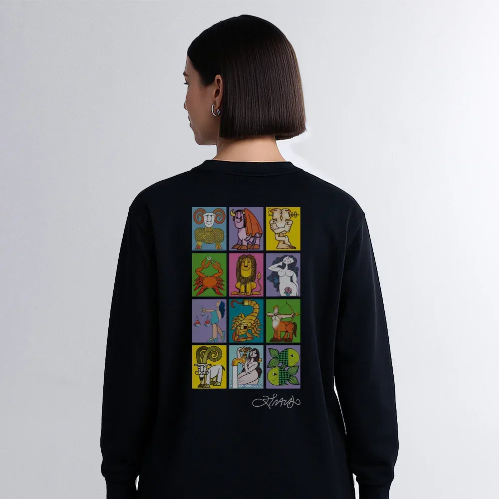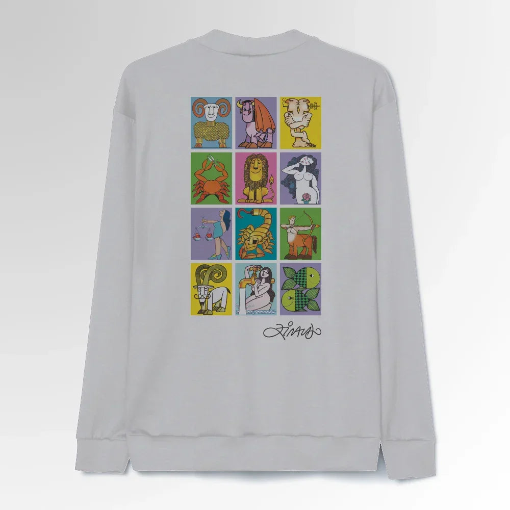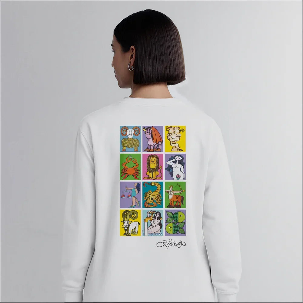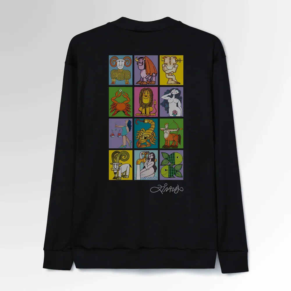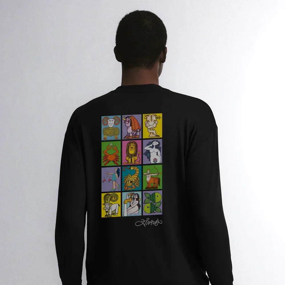 Estampado em um moletom leve, o Zodíaco de Ziraldo ganha uma nova forma. Originalmente pensado pra caixas de fósforos de luxo dos anos 70, o zodíaco foi ilustrado com bom humor por Ziraldo para uma edição colecionável de pequenas artes.é um essencial do guarda-roupa masculino que traz mais praticidade para o dia a dia.