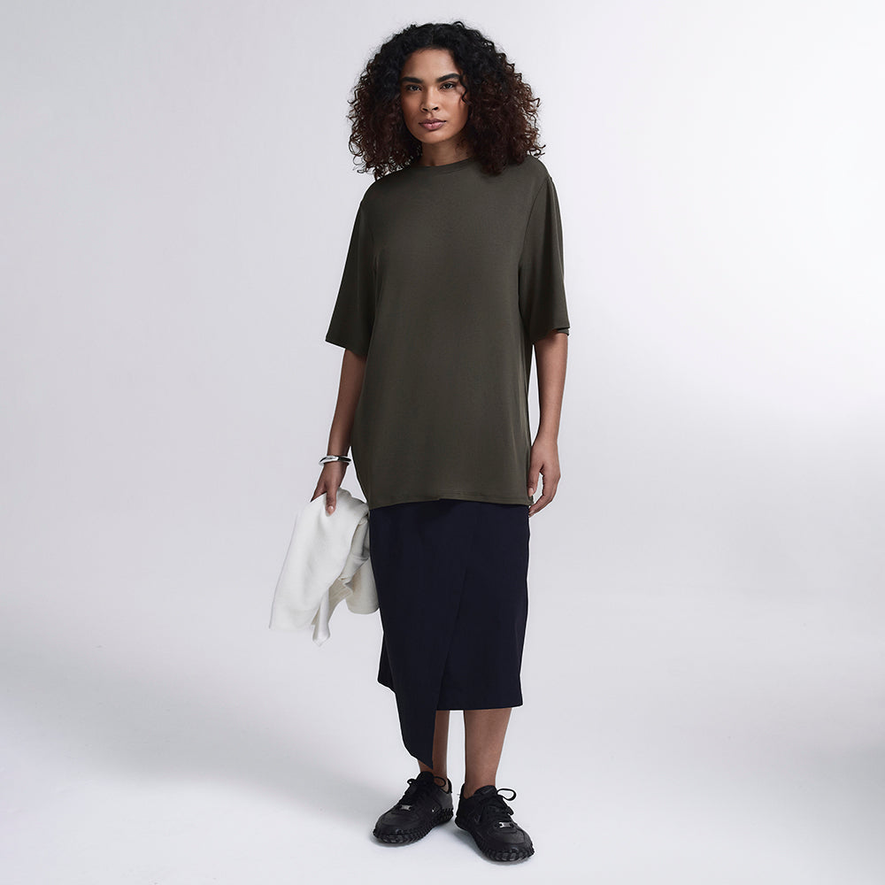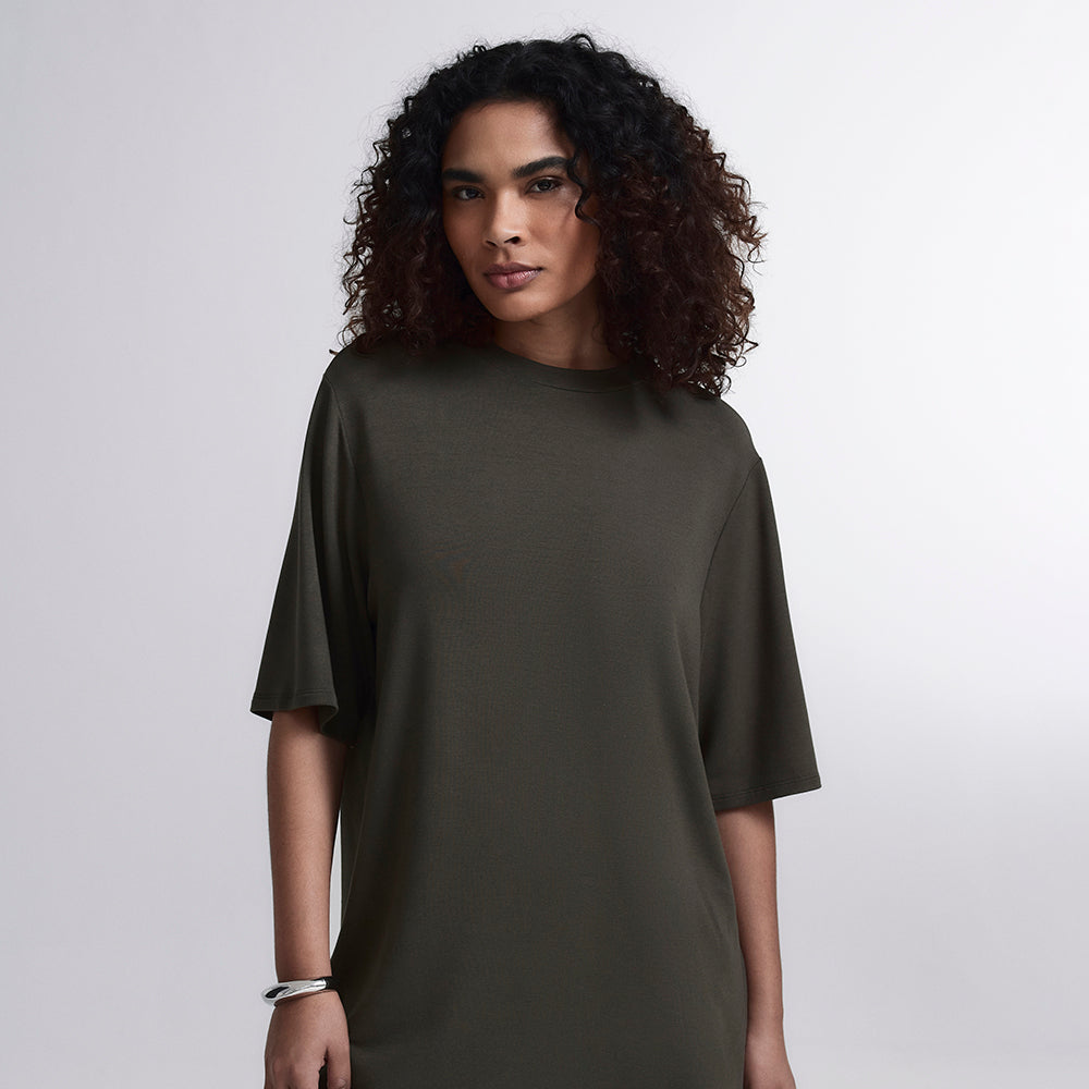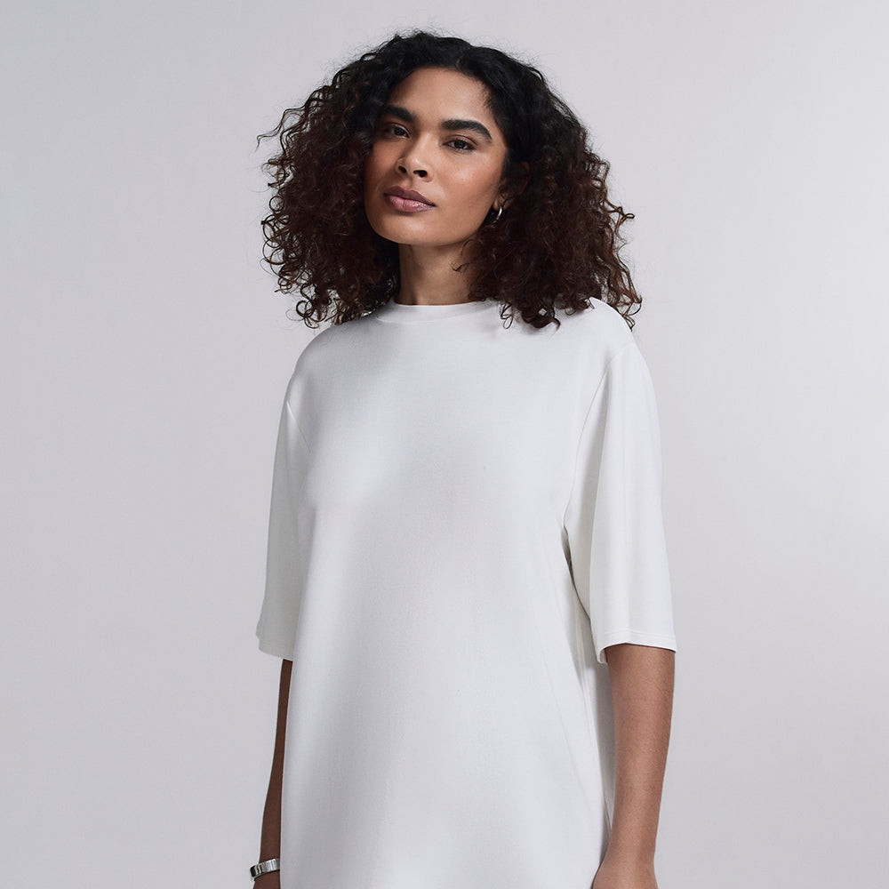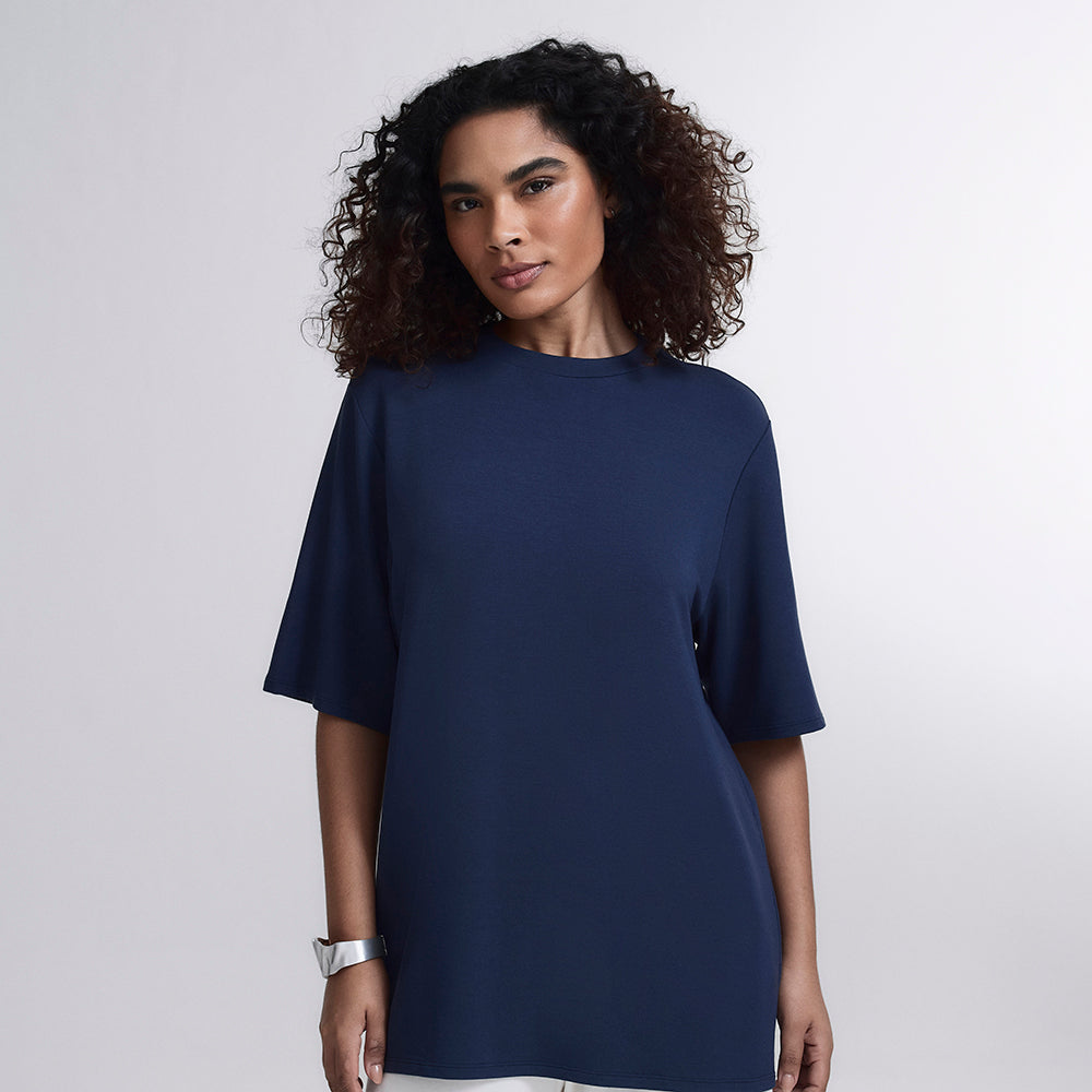 A maciez do novo tecido InLounge™ e o caimento estruturado vão transformar a Oversized T-Shirt na sua peça essencial favorita.