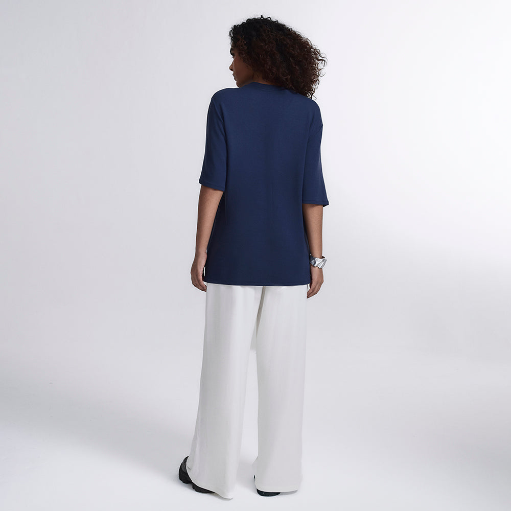 Feito com tecido InLounge™, tem fibras de origem renovável e biodegradável, não desbota com o tempo, traz conforto térmico e toque macio. Voltada para quem busca um estilo casual e versátil, as peças com esse tecido trazem um design minimalista com caimento mais leve e funcional, ideal para o dia a dia. É o equilíbrio entre conforto, praticidade e sofisticação discreta, com um visual clean e contemporâneo.