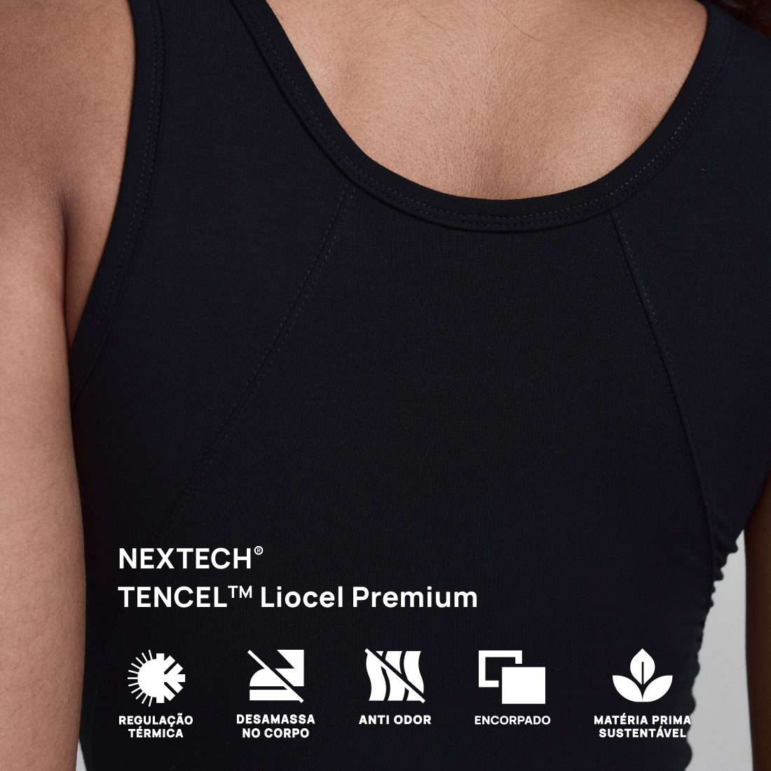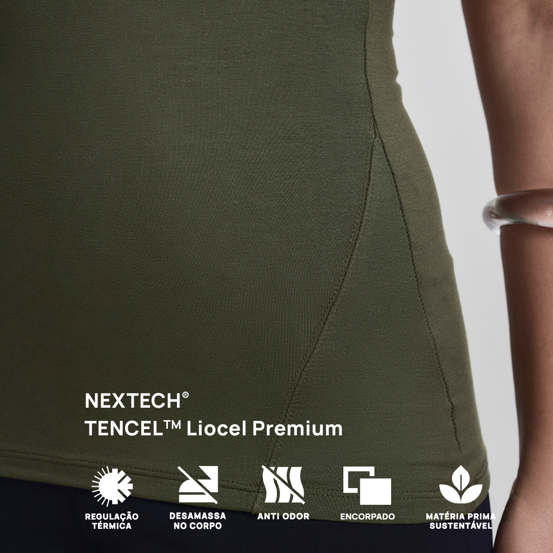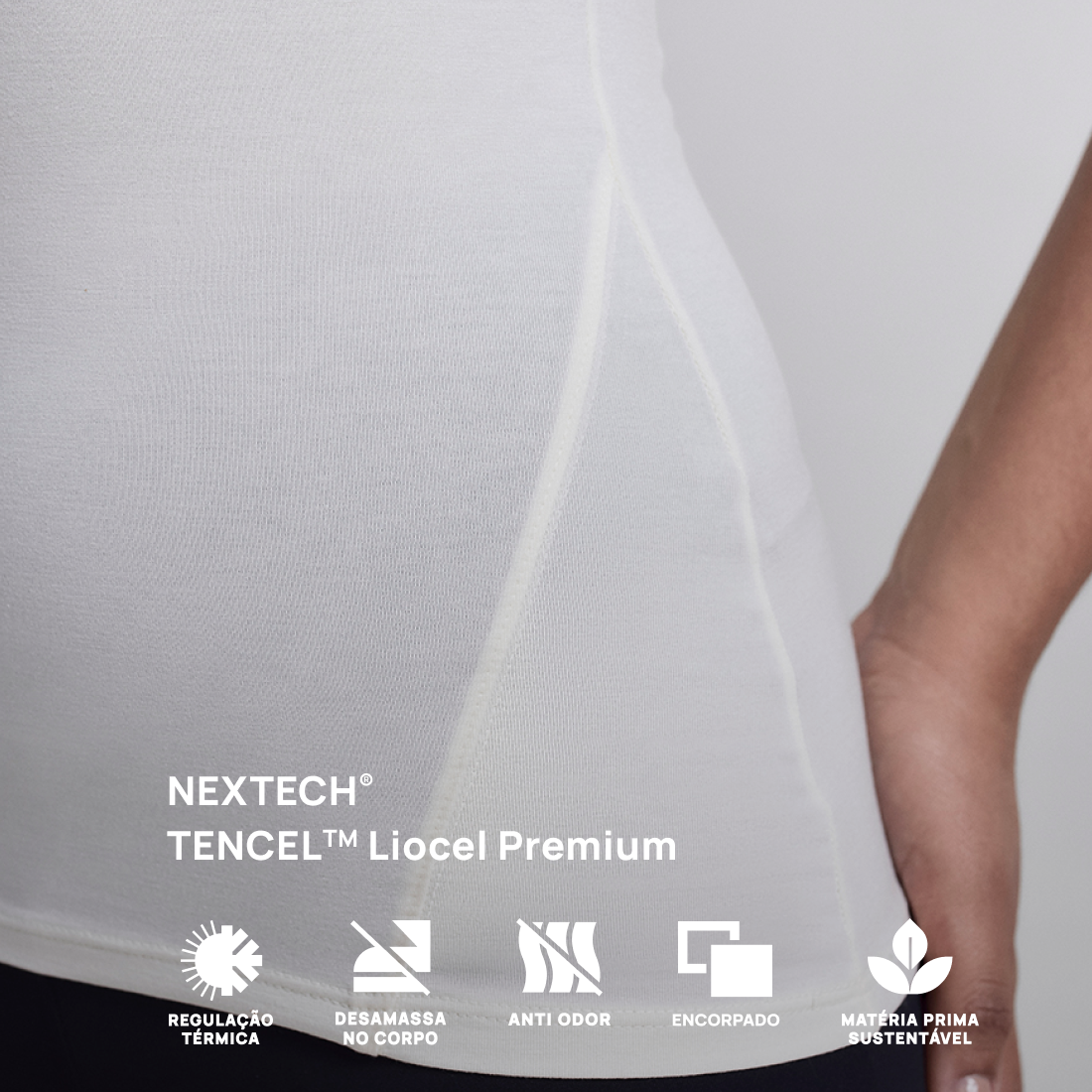 A Regata NEXTECH é a primeira e única camiseta no Brasil feita com as fibras TENCEL™ Liocel. Tecnologia invisível aos olhos, mas evidente no uso: durabilidade incomparável, conforto térmico avançado e caimento levemente encorpado para não marcar o corpo.