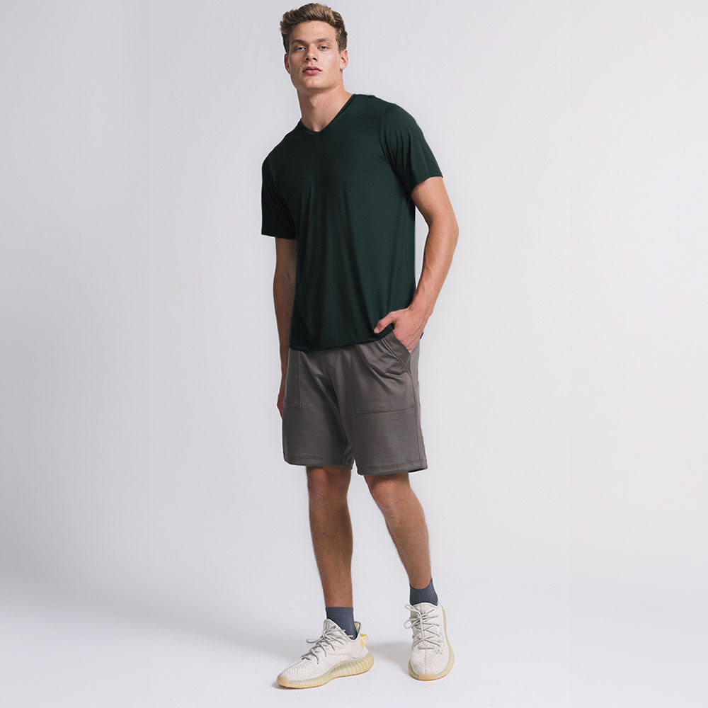Releitura Tech da camiseta básica em V, anti odor, não precisa ser passada