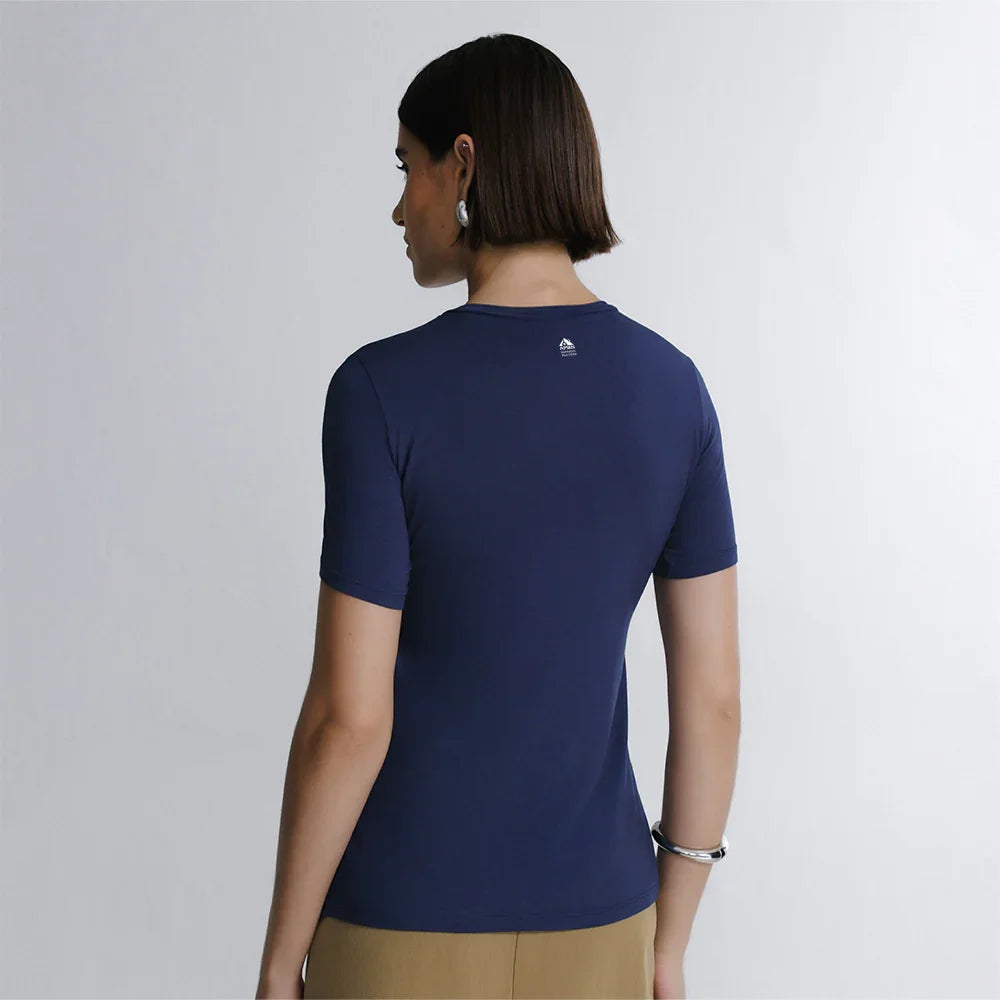 facilita tudo: o trabalho, o treino, o cuidado e até a hora de se vestir. Como ela não pega cheiro fácil, requer menos lavagens. Como ela não desbota, requer menos compras. Como ela é minimalista e atemporal, entrega mais combinações com facilidade. Além disso, tem maciez superior ao algodão e emite até 81.5% menos gases estufa que o modal convencional.