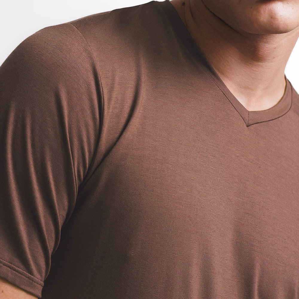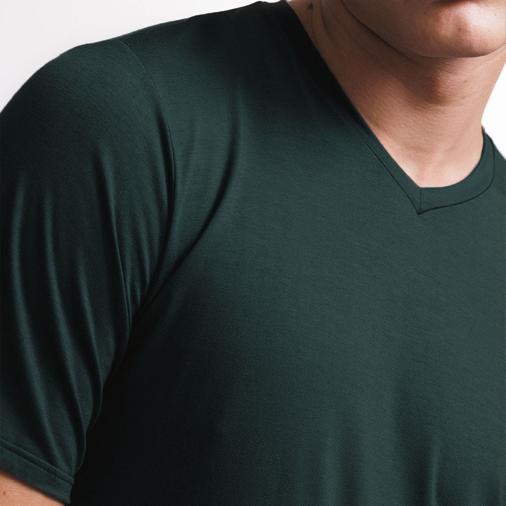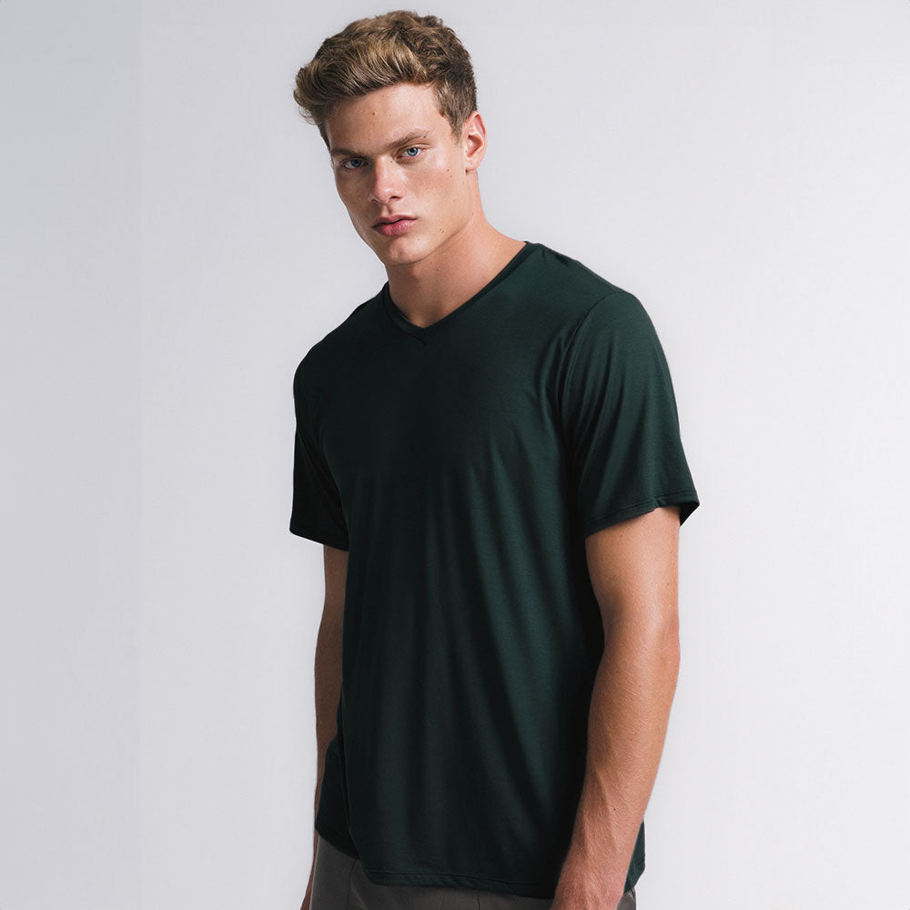 Releitura Tech da camiseta básica em V, anti odor, não precisa ser passada