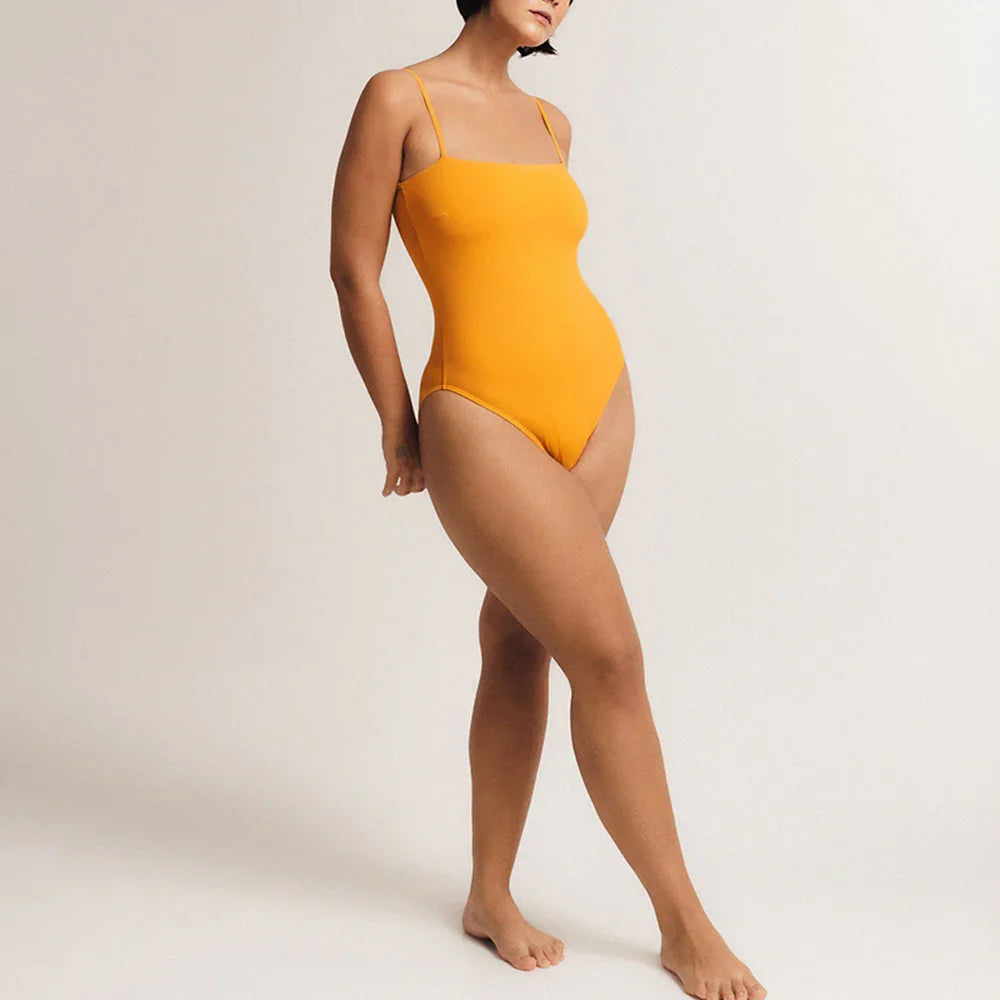 Em cores que transmitem a elegância solar e dialogam com diferentes tons de pele, esse maiô de decote reto pode ser usado como traje de banho ou body. Tem alças finas, abertura mediana nas pernas, busto com bojo removível e tecido ZEAMADE ™️ duplo com forro, que não deixa transparecer.