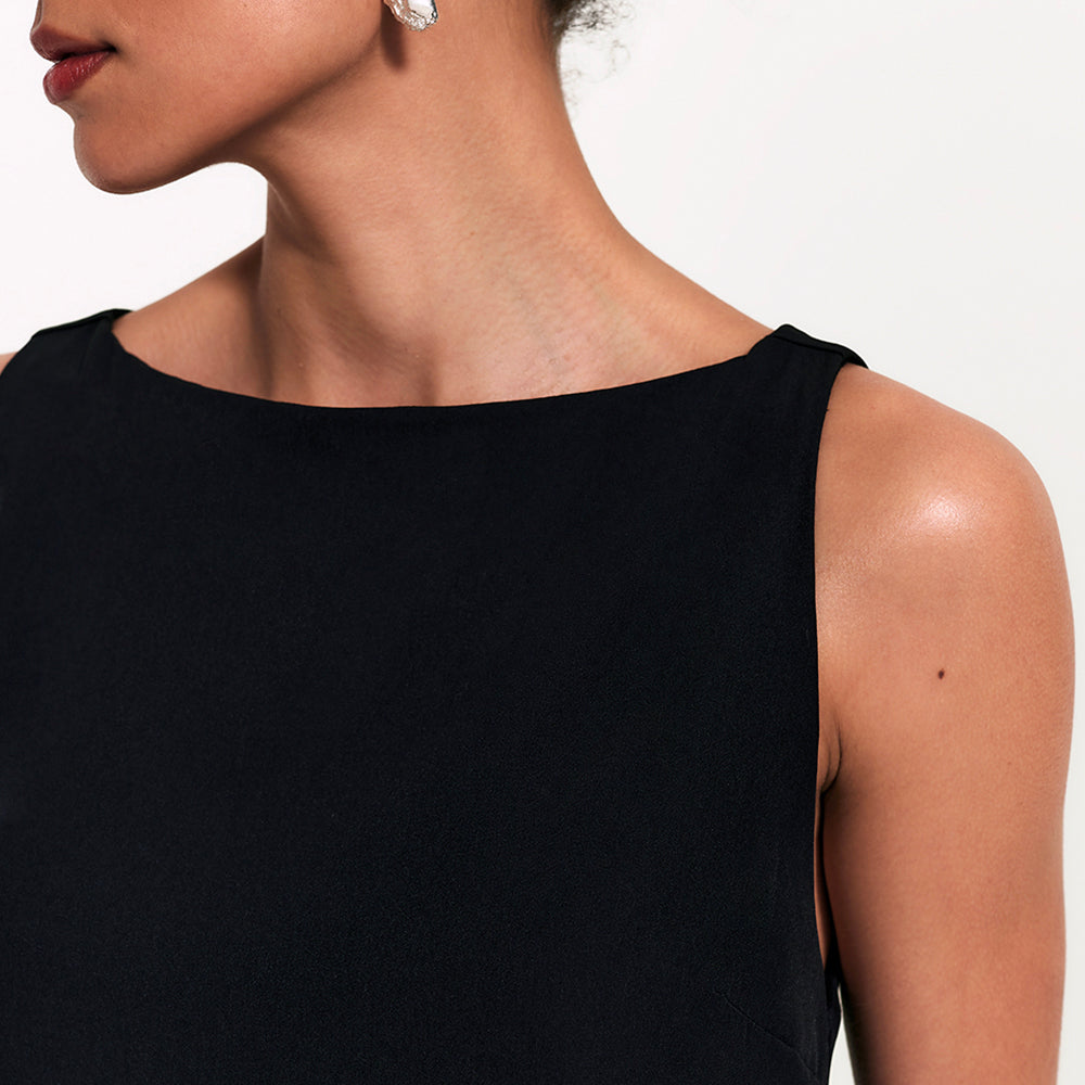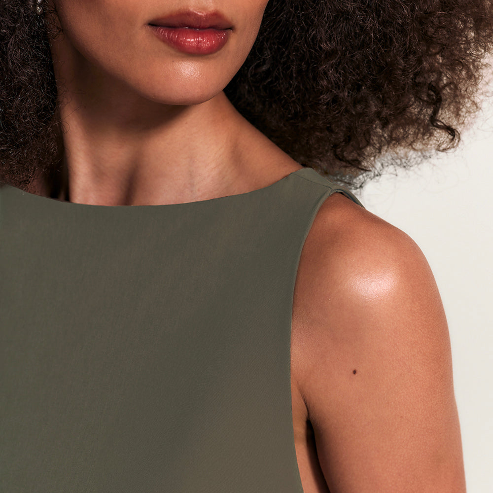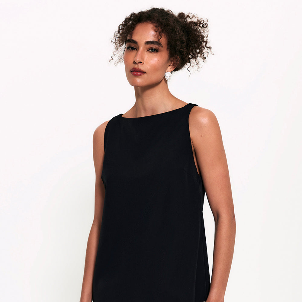 O aliado mais versátil da sua rotina: uma leitura contemporânea e tecnológica do vestido clássico e 2 em 1, que funciona também como túnica com sobreposição. A gola canoa traz sofisticação discreta, enquanto o shape curto e solto adiciona leveza e versatilidade ao look. Essencial, mas longe de ser básico, é feito com o tecido tecnológico FutureForm®: leve e acompanha seus movimentos sem limitar, mantendo o caimento e conforto impecáveis.