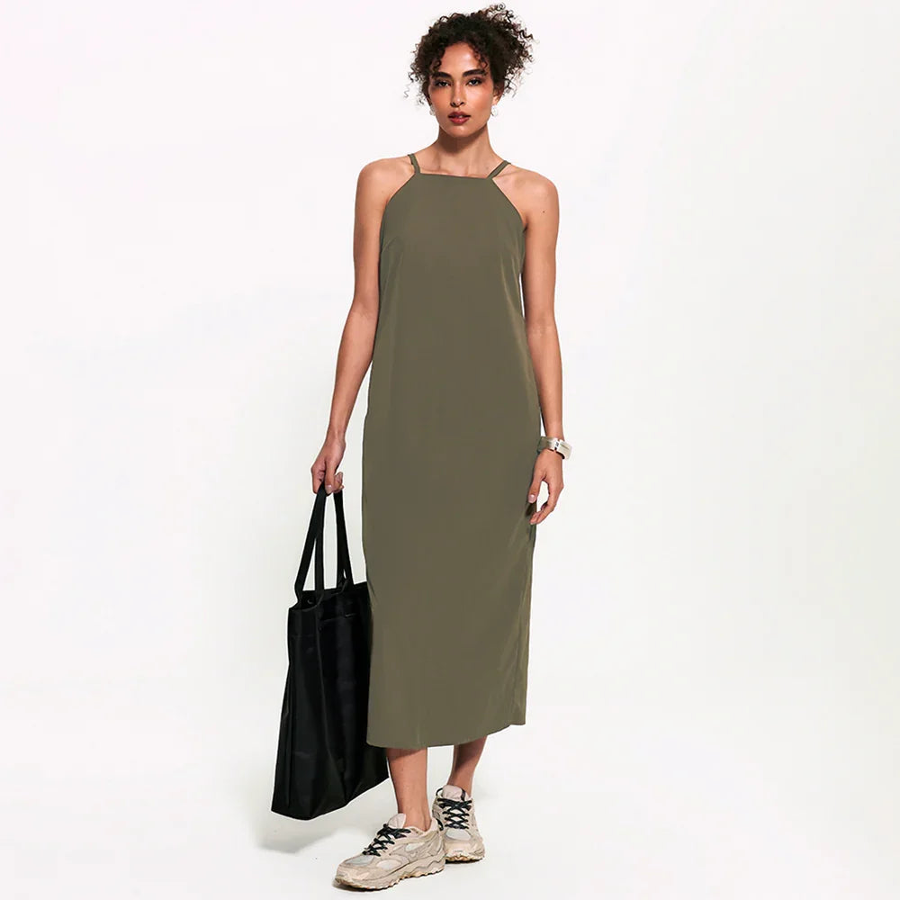Ele é aquele vestido coringa do verão, mas evolui ao ser feito com o tecido tecnológico FutureForm®: é leve e acompanha seus movimentos sem limitar, mantendo o caimento e conforto impecáveis. Vai do formal ao casual em uma troca de sapato e acessórios.
